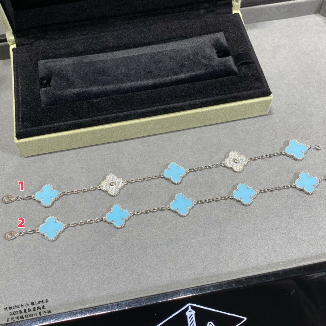 V*N CL*F & Arpels Royal Blue Ceramic Five-Flower Four-Leaf Clover Bracelet