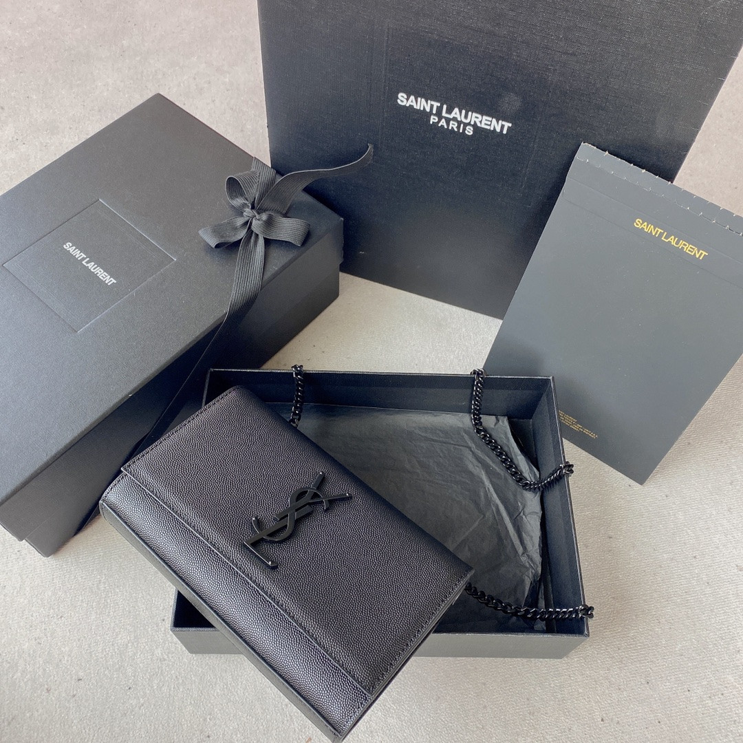 Y*L KATE SMALL IN GRAIN DE POUDRE EMBOSSED LEATHER NAVY 7.8 X 4.9 X 1.9 INCHES